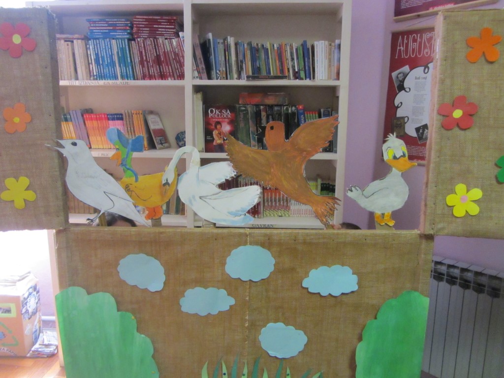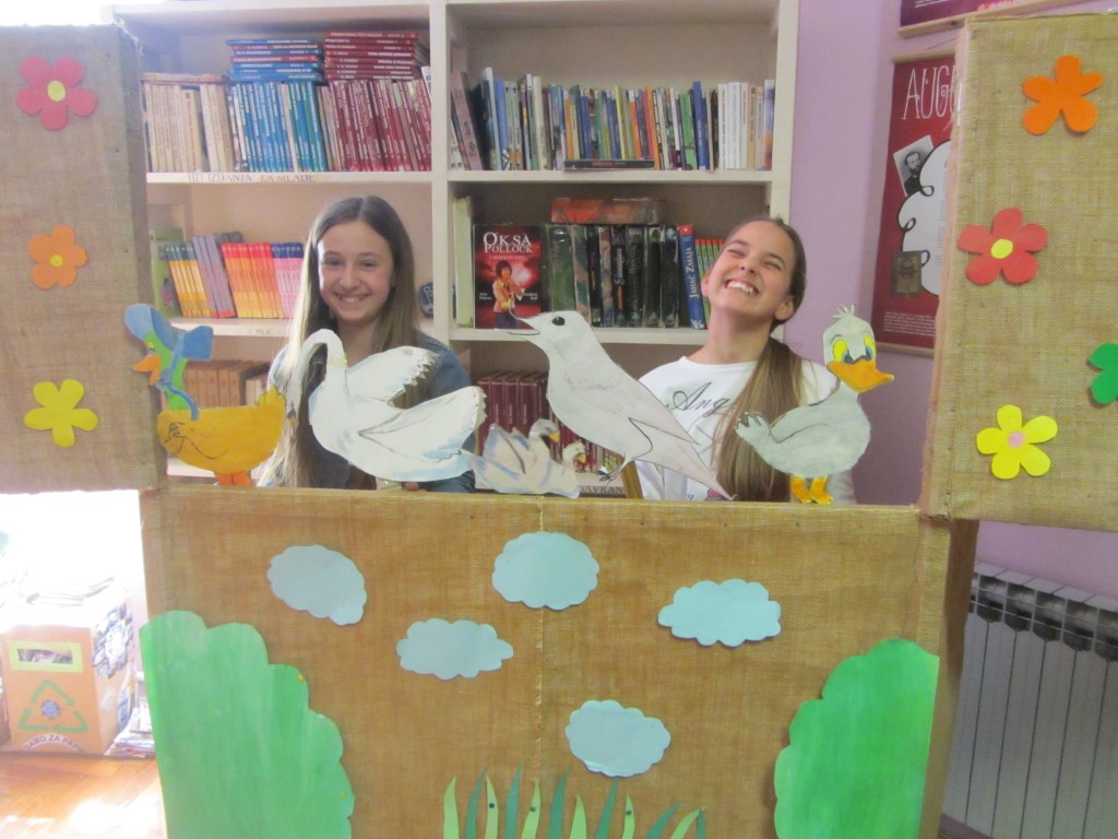 Mlade knjižničarke iz 5. a i 5. b razreda održale su predstavu Ružno pače za učenike 1. a i 1. b razreda povodom Noći knjige. Prvaši su legli na svoje jastuke i uživali u predstavi. Predstava im se jako svidjela, a nakon odgledane predstave odgovarali su na postavljena pitanja. Knjižničarka Jela predstavila im je život poznatoga pisca bajki Hansa Christiana Andersena i upoznala ih s njegovim djelima. Nakon toga mame prvaša čitale su im priču Pale sam na svijetu. Prvašima se priča jako svidjela, ali rekli su da nikada ne bi niti poželjeli biti sami na svijetu. Taj sat im je bio jako zabavan i mislim da su naučili mnogo toga čime će se služiti u životu te da će pročitati još puno drugih zanimljivih bajki.