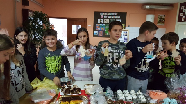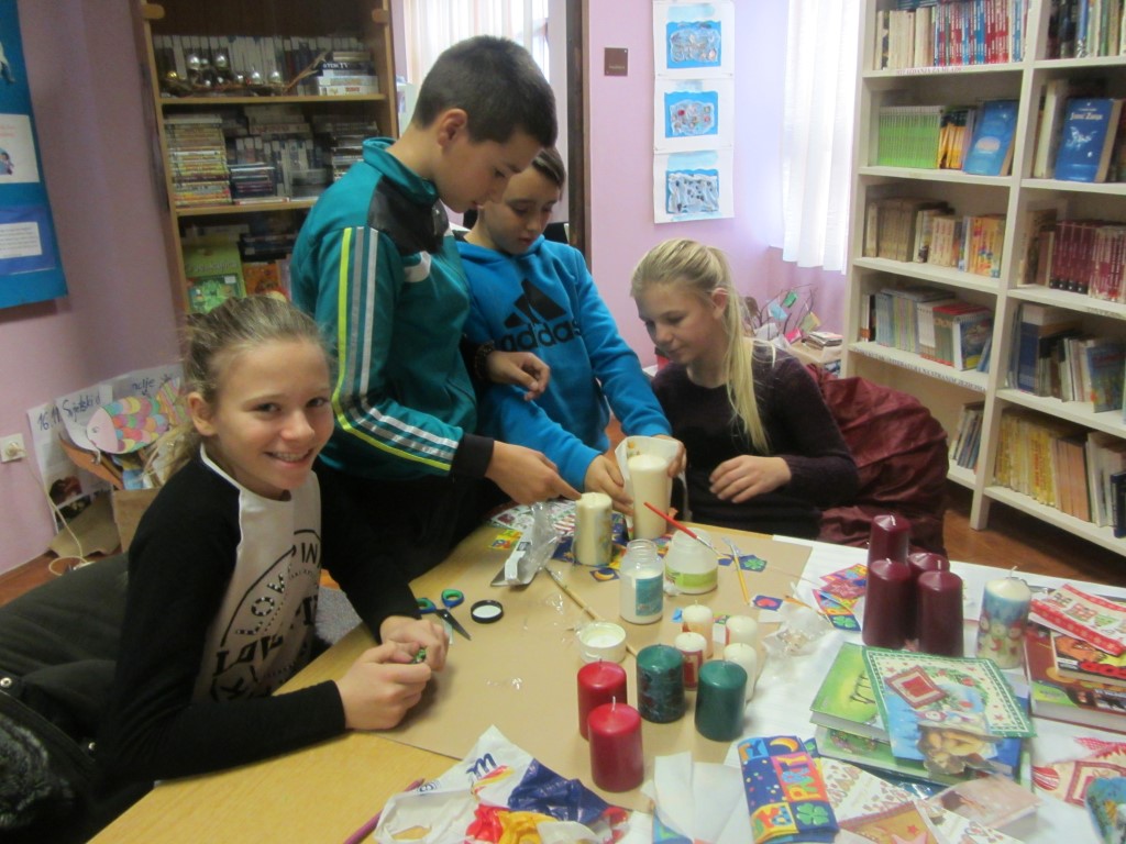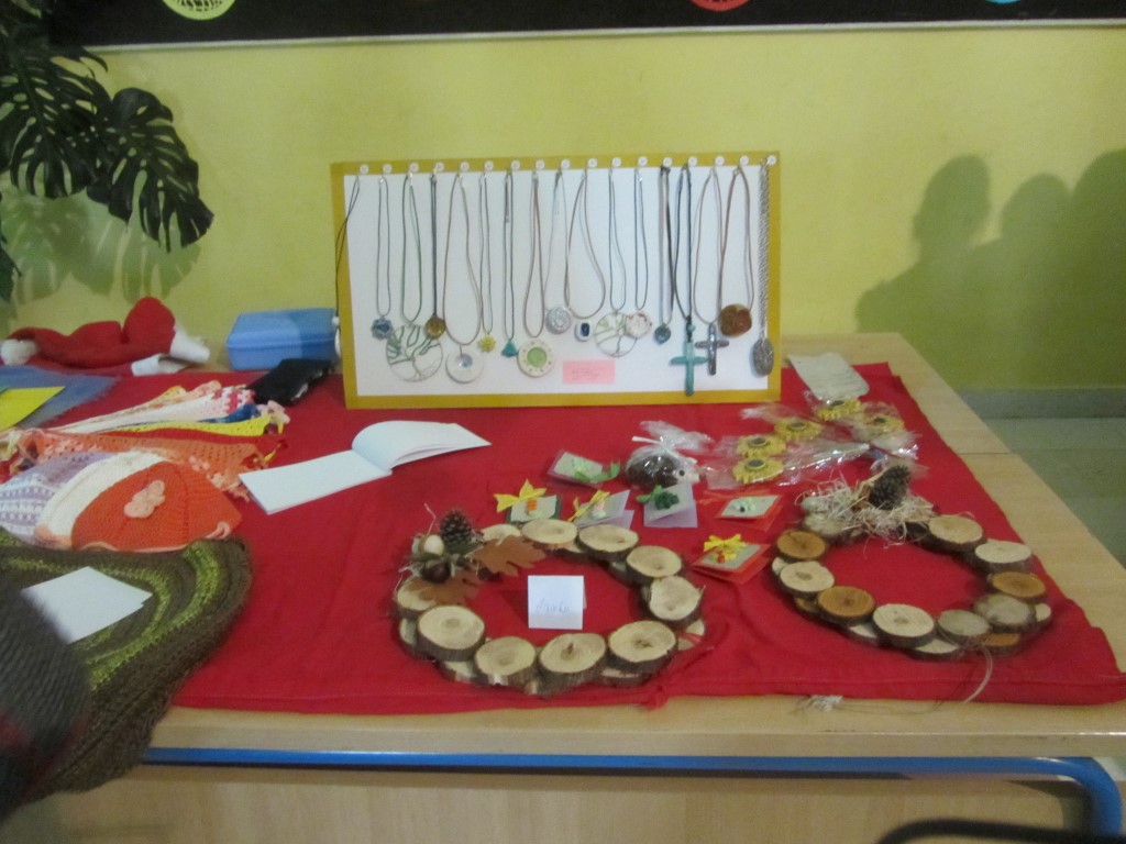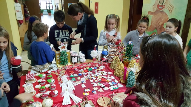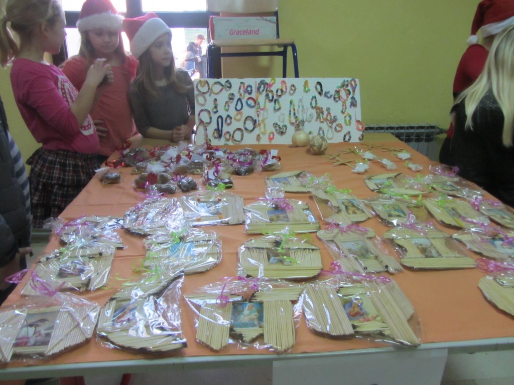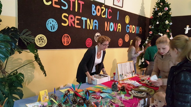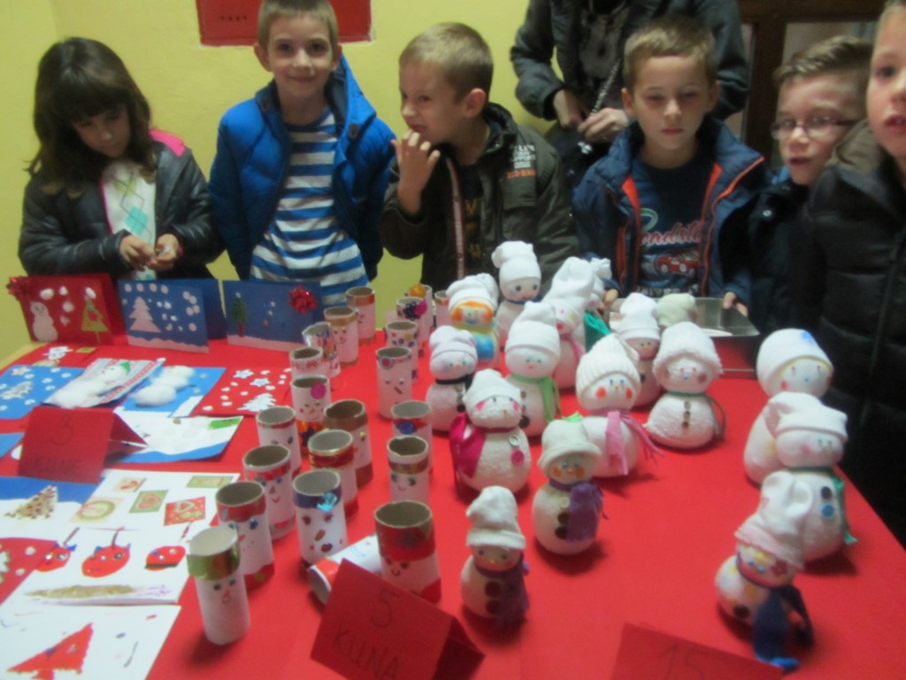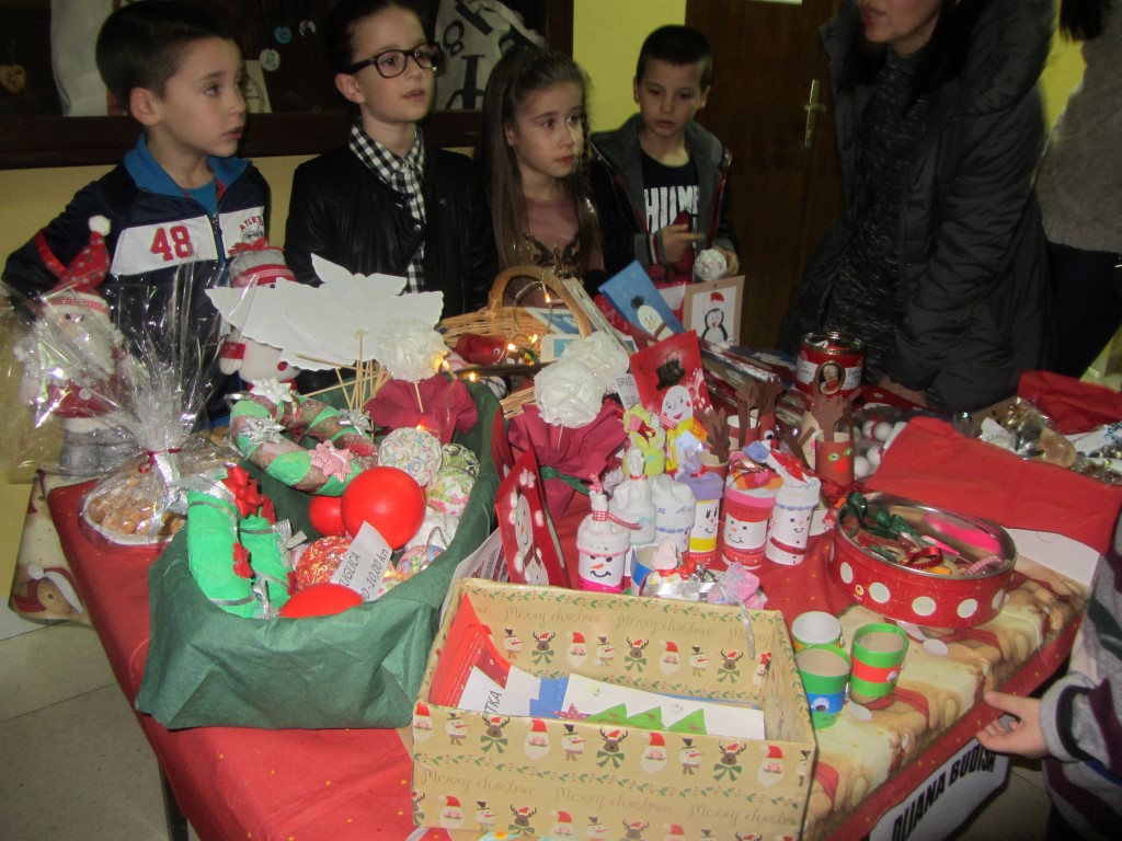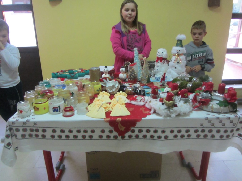 Na štandovima smo primijetili vijence, jelke, snjegoviće, čestitke, ukrasne kutije, kolače, kuglice, kalendare, svijeće, anđele i još puno, puno kreativnih i veselih rukotvorina. Potražnja i odaziv posjetitelja su bili veliki. Kao uvijek, najbolji su kupci bili naši roditelji i učitelji. Prikupljeni novac je otišao u dobrotvorne svrhe - pola svote novca donirano je za knjižnicu, a druga polovica svote novca je namijenjena za djecu Afrike jer naša škola ove se godine uključila u UNICEF-ov program pomoći djeci Afrike. Najviše su novca zaradili niži razredi čiji su štandovi bili najveseliji i oko njih se stvarala najveća gužva, ali ove godine pohvalili bismo 5. a. razred koji je po 440 kn dao i za knjižnicu i za djecu Afrike te se istaknuo svojom poduzetnošću i velikodušnošću.