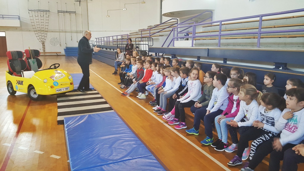 Za naše prvaše Mala prometna škola Hrvatskog autokluba održala je edukativno predavanje s demonstracijama rizičnih situacija u prometu.