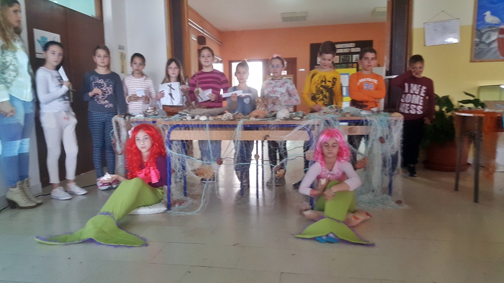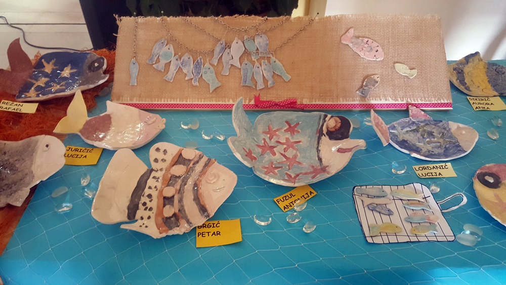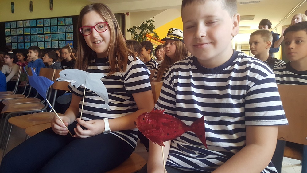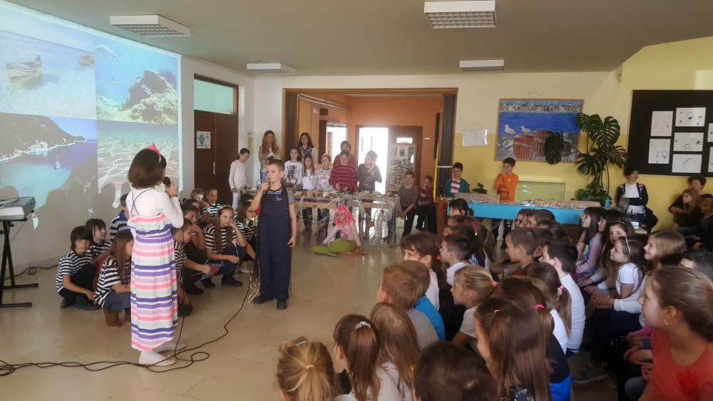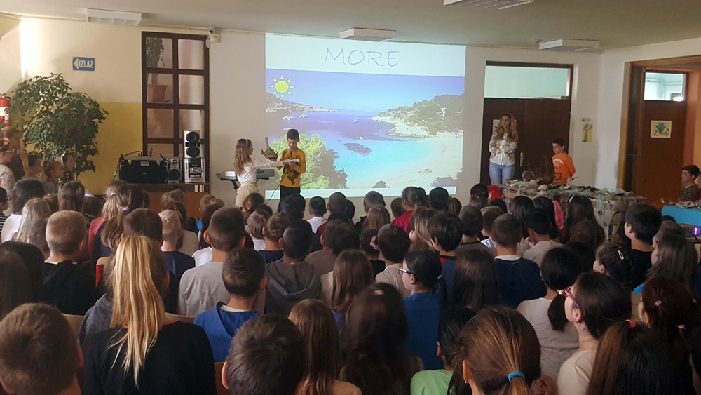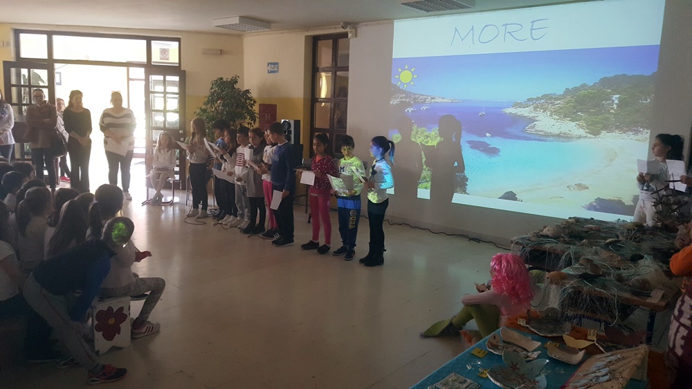 Sve svoje radove i aktivnosti predstavili su cijeloj školi. Učenici prvih razreda uveli su nas u morski svijet svojim likovnim radovima i recitacijama Rakova ljubav i Nestašni val. Učenici 2. a razreda pokazali su nam malu izložbu školjaka i puževa Jadranskog mora te glinene zdjele i privjeske u obliku riba. Učenici 2. b pročitali su pjesme o moru koje su sami napisali, a učenici 2. c razreda otpjevali su nam dobro znane pjesme O more duboko i Plovi barka.