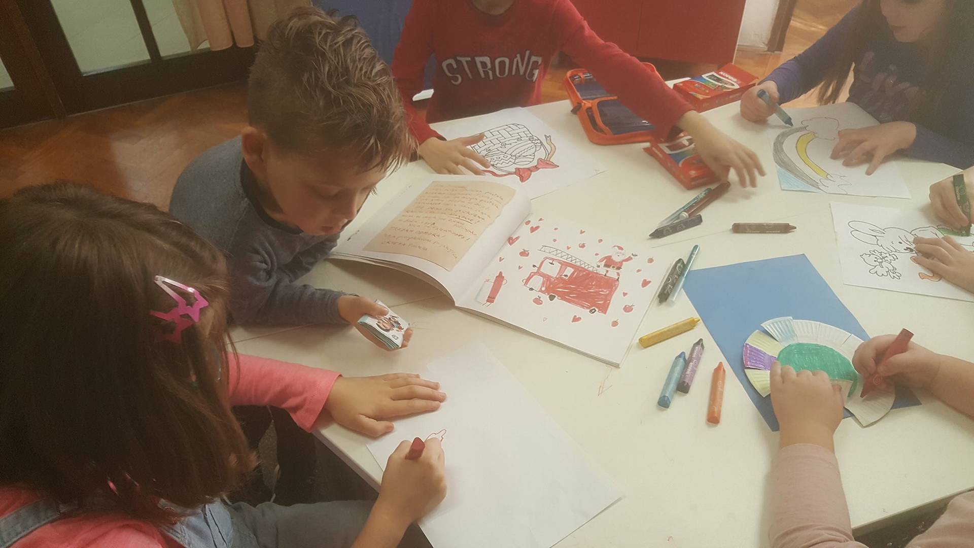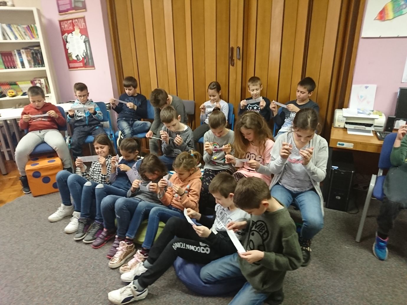 S učenicima prvog razreda koji pohađaju produženi boravak u školi čitali smo slikovnicu Pastele u štrajku Drewa Daywalta nakon čega se održala mala likovna radionica bojanja pastelama dok su trećaši (3.a i 3.b) čitali slikovnicu Tajanstveno pismo koja ih je motivirala za radionicu Poštujem tvoju privatnost.