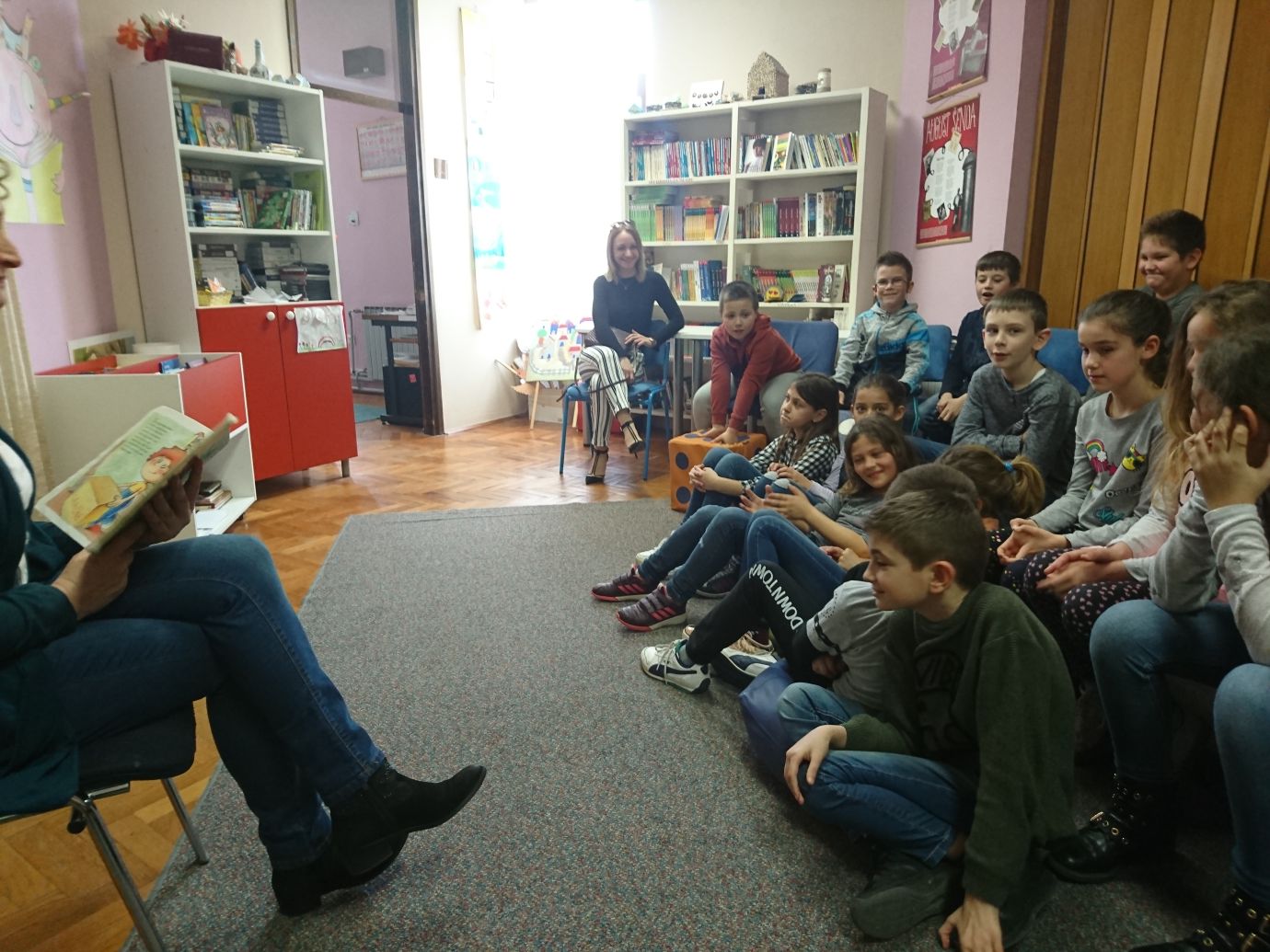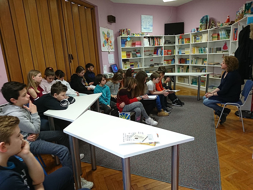 Učenica 6.b razreda Ana Mikulić za svoj je razred pripremila prezentaciju romana Ksenije Grozdanić Nova sam u školi, a učenici 7.a razreda čitali su ulomke iz romana Mirjane Mrkele Dragi Olivere te održali malu debatu na temu Lako (ni)je biti dijete.