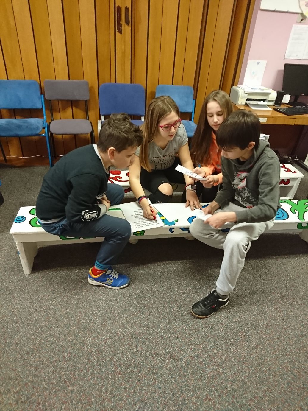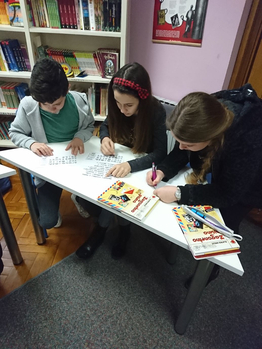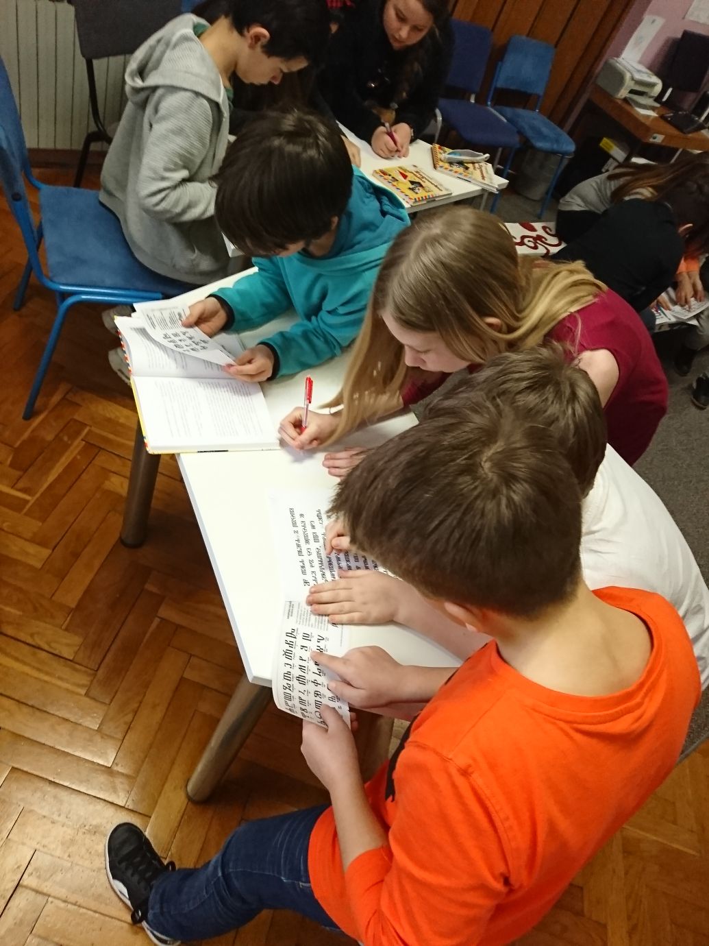 Učenici 5.c razreda čitali su roman Zlatka Krilića Zagonetno pismo i sudjelovali u zabavnoj radionici dešifriranja u kojoj su morali „probiti šifru“ tj. transliterirati pisma napisana na glagoljici.