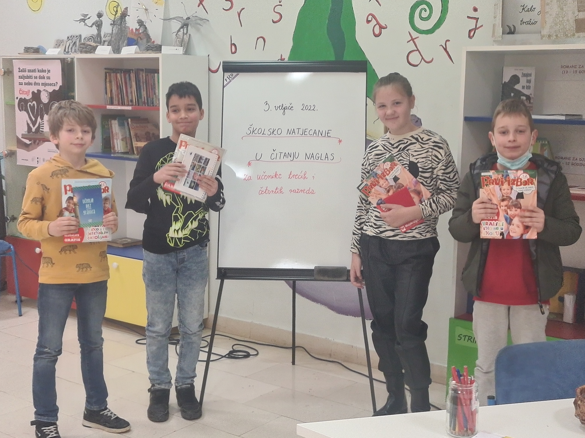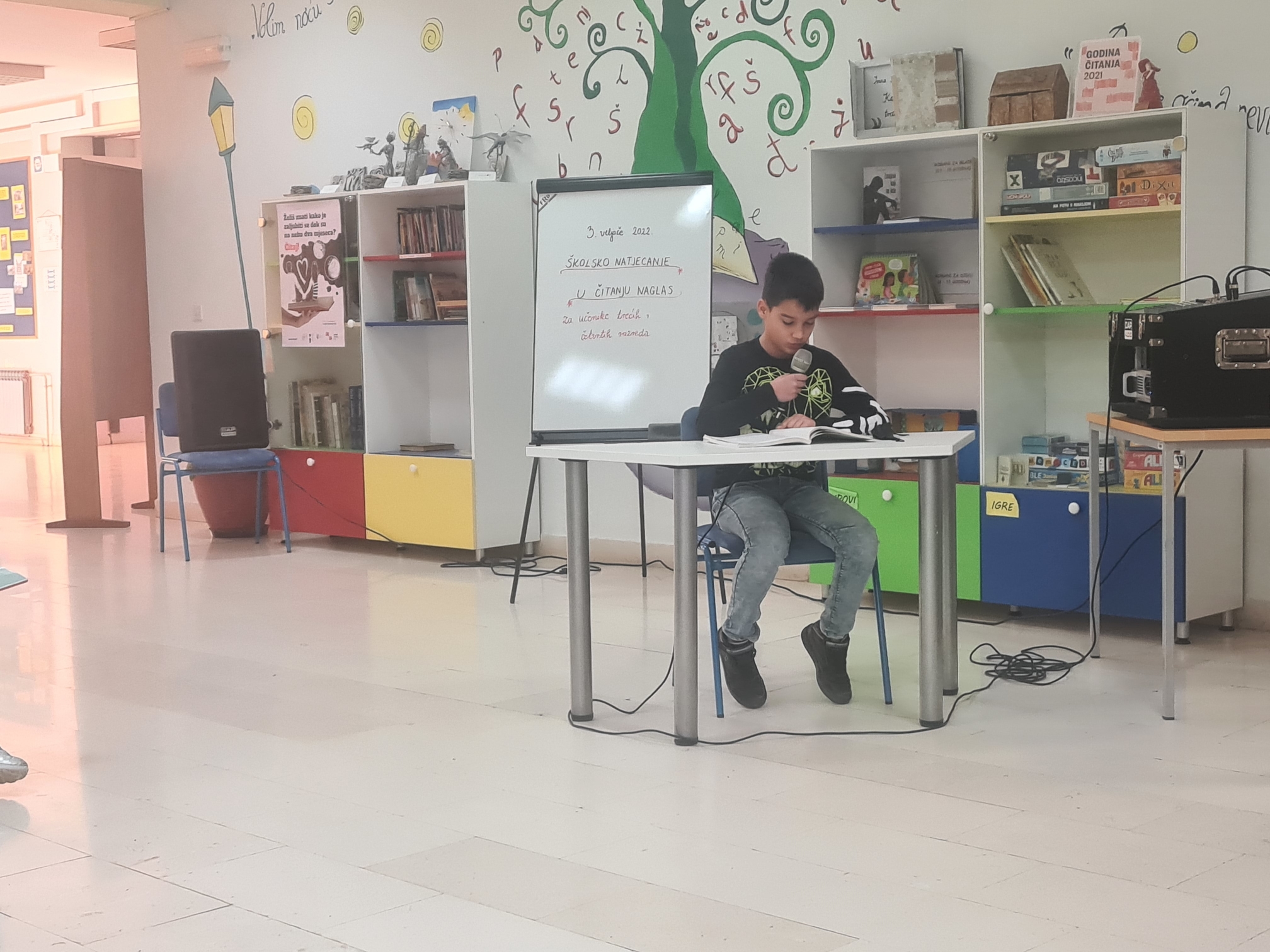 među učenicima trećih i četvrtih razreda. Po dvoje najboljih čitača iz svakog razreda sudjelovalo je na natjecanju, a između desetero natjecatelja povjerenstvo je odabralo troje najuspješnijih čitača. To su Jakov Šarić iz 4.b razreda koji je čitao tekst Zvonimira Baloga Pranje ruku, Šime Vuica iz 3.b razreda s tekstom Ole i Trufa Isaaca Bashevisa Singera te učenica 4.a razreda Nikol Šošić koja je čitala tekst Mladena Kopjara Pamučni snijeg. Posebnu nagradu dobio je učenik Marko Sikirić iz 4.a razreda koji je odabran od strane samih natjecatelja anonimnim glasovanjem za svoju interpretaciju teksta Trešnje tugarinke Diane Zalar.