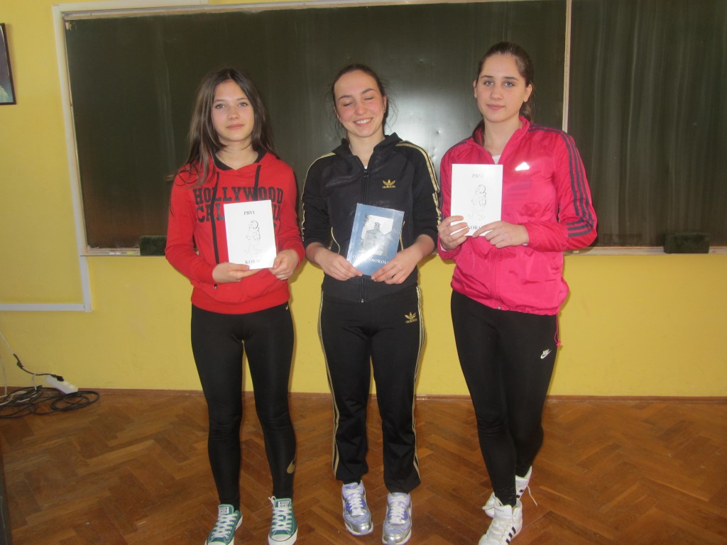 Prvo mjesto na natjecanju osvojila je Laura Šimunić iz 7. b razreda s ulomkom iz romana Waitapu Jože Horvata koja se upućuje na županijsko natjecanje,dok je drugo mjesto pripalo Danijeli Šimunić s ulomkom iz istog romana. Treće mjesto pripalo je Marijeti Šimunić, također učenici 7. b razreda koja je čitala ulomak iz romana Julesa Vernea Put u središte Zemlje.