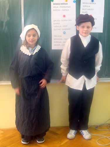 Upoznali smo se i s dijelovima bibinjske narodne nošnje, a Borna i Lucija su jako lijepo izgedali kad su je obukli.